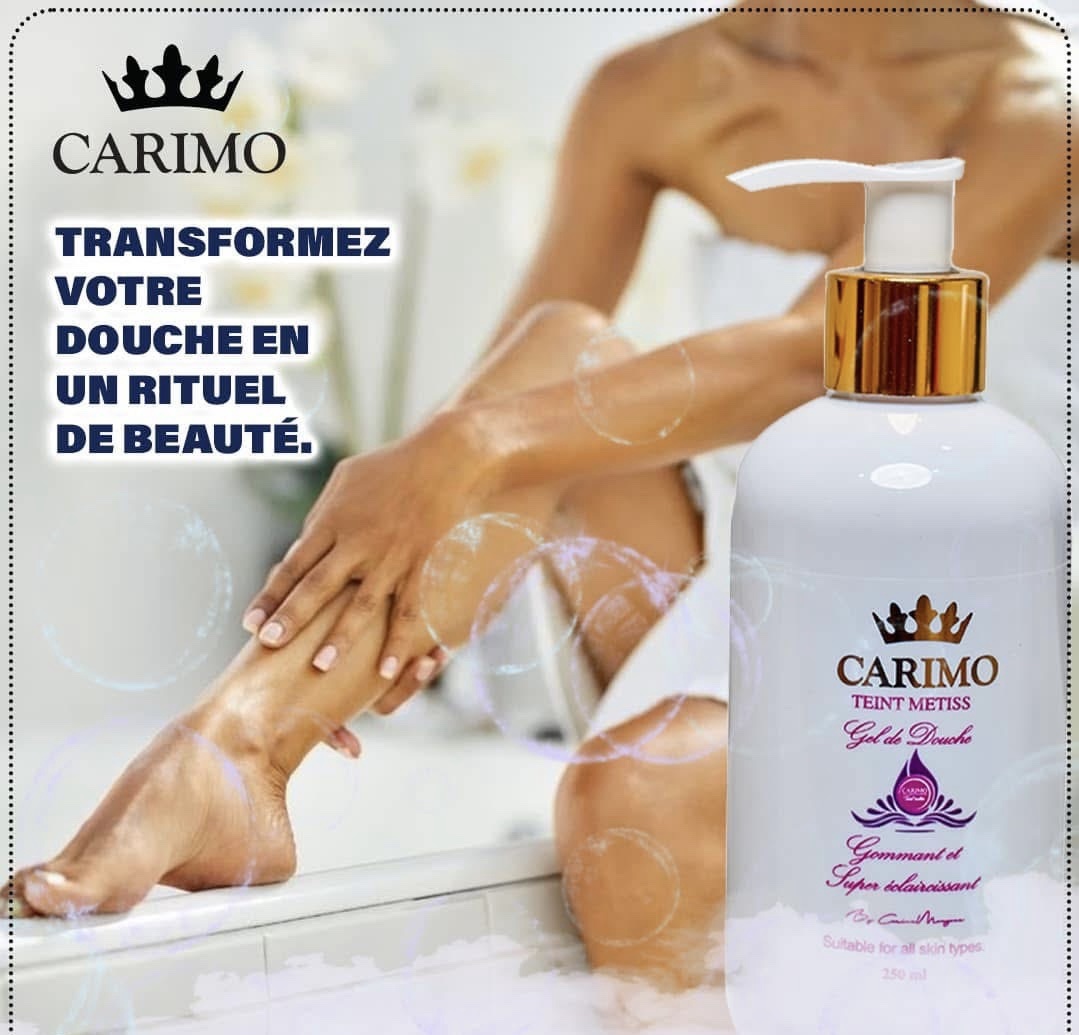 Utilisation: Appliquer sur peau sèche 3 à 5 minutes avant le bain. Ne pas appliquer sur le visage. Rincer puis utiliser le savon métisse CARIMO pendant le bain
